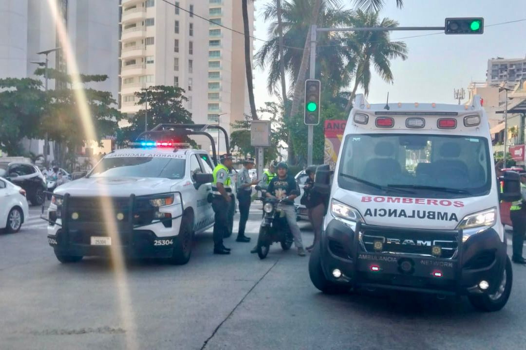Acapulco; Gro,. A 12 de febrero del 2026.- Una persona resultó lesionada la mañana de este jueves tras la volcadura de una unidad del transporte público sobre la avenida Costera Miguel Alemán, a justo a la altura de las Torres Gemelas.